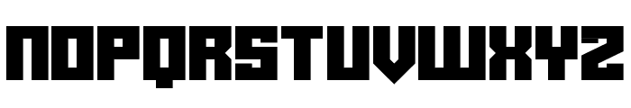 This font features a bold, geometric design with a blocky and futuristic appearance. The characters are uniformly wide, with sharp angles and a strong presence, making it ideal for impactful visual statements.